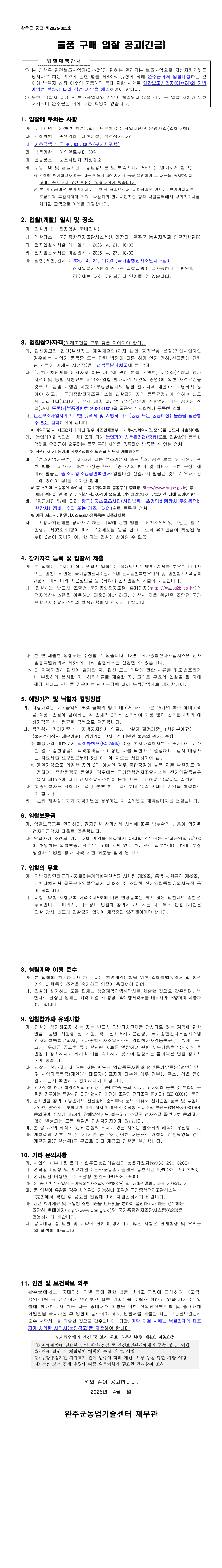 2026년 청년농업인 드론활용 농작업지원단 운영사업 드론 구입(입찰대행)(긴급)(변경) |