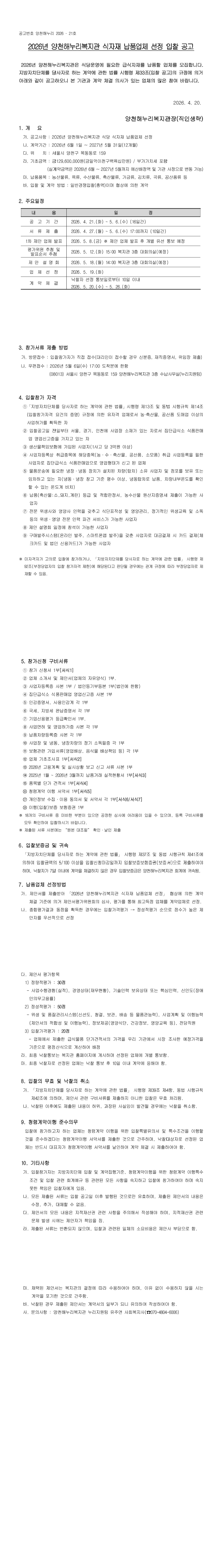 2026년 양천해누리복지관 식자재 납품업체 선정 입찰 공고 |