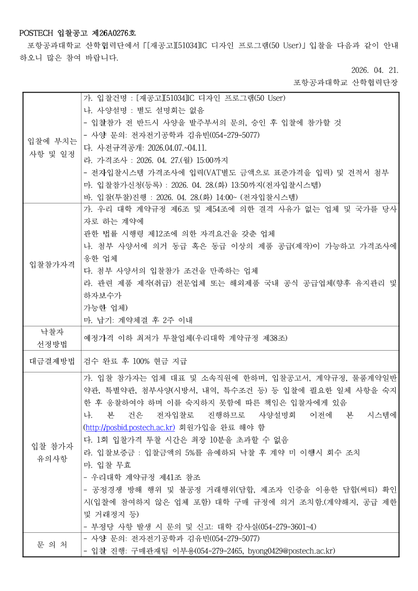[재공고][51034]IC 디자인 프로그램(50 User) |