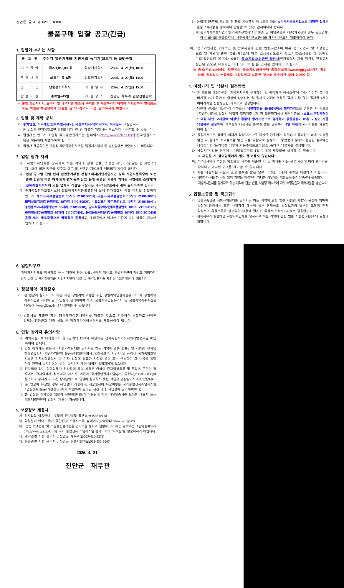 주산지 일관기계화 지원사업 농기계(쇄토기 등 8종) 구입(긴급) |