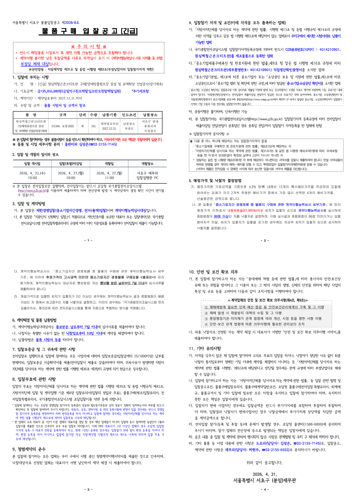 [긴급] 원심력철근콘크리트관 구매[양재빗물펌프장 증설 및 유역확장 건설공사(장기계속) |