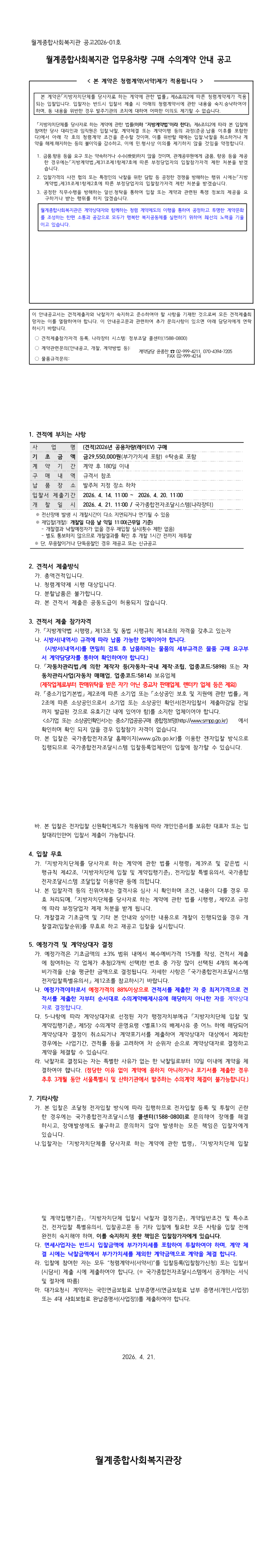 월계종합사회복지관 공용차량(레이EV) 견적제출 공고 |