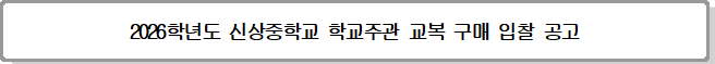 「지방자치단체를 당사자로 하는 계약에 관한 법률 시행령」(이하 〝지방계약법 시행령“이라 한다.) 제18조(2단계 입찰)의 규정에 따라 2026학년도 신상중학교 신입생 교복(하복,동복) 구매 업체 선정을 위해 다음과 같이 공고합니다.