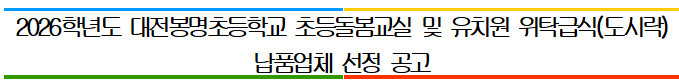 2026학년도 대전봉명초등학교 초등돌봄교실 및 유치원 위탁급식(도시락) 납품업체 선정 공고