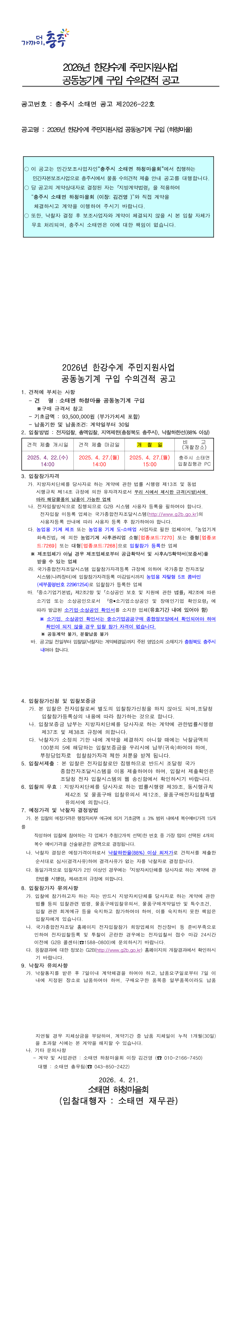 2026년 한강수계 주민지원사업 공동농기계 구입(콤바인)입찰대행 |