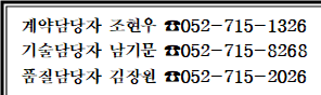 ○ 조달전략실 계전구매기술부 남기문(052-715-8268)