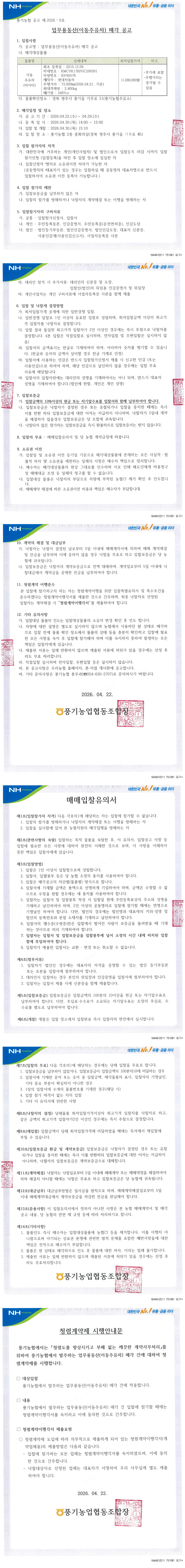 풍기농협 업무용동산(이동주유차) 매각 공고 |