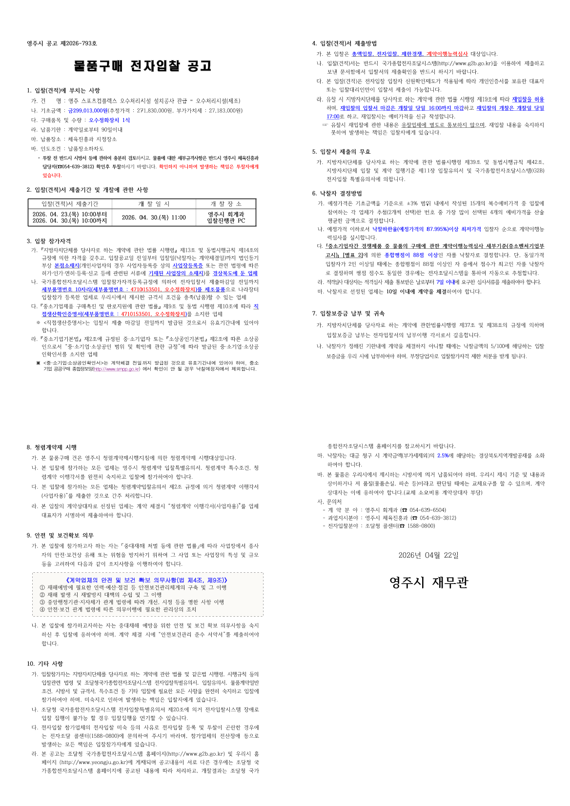 영주 스포츠컴플렉스 오수처리시설 설치공사 관급 - 오수처리시설(제조) |