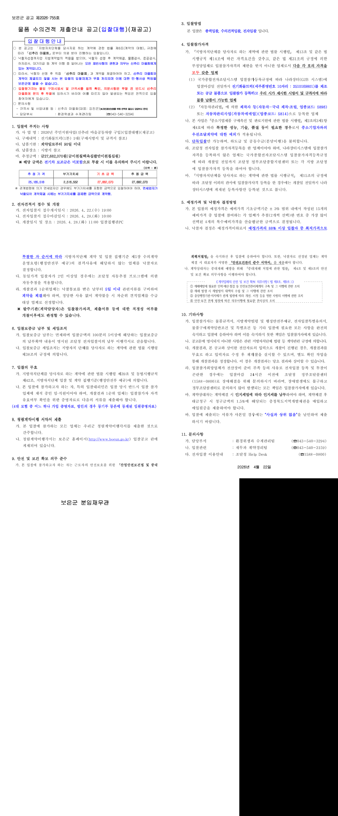 2026년 주민지원사업(신추리 마을공동차량 구입)(입찰대행)(재공고) |