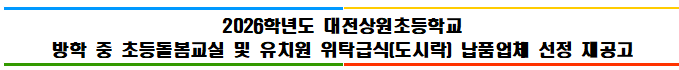 2026학년도 대전상원초 방학 중 초등돌봄교실 및 유치원 위탁급식(도시락) 납품업체 선정 재공고