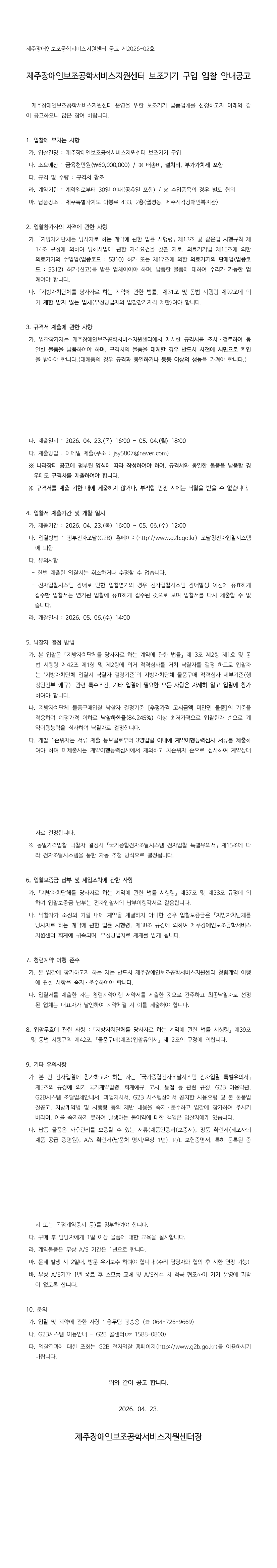 2026 제주장애인보조공학서비스지원센터 보조기기 구입 |
