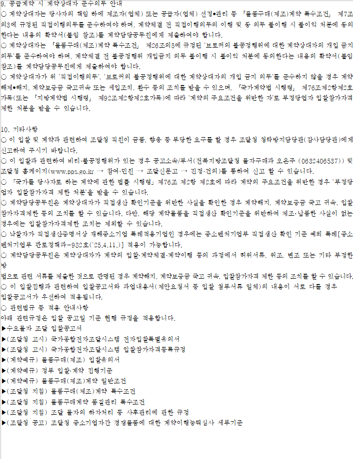 ○ 이 입찰에서 동일가격 입찰에 대해 추첨은 국가종합전자조달시스템 전자입찰특별유의서 제15조에 따라 최종낙찰자를 선정합니다.