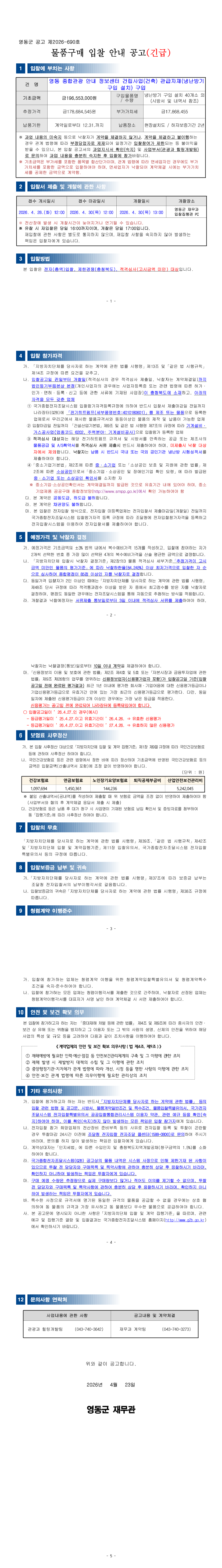 영동 종합관광 안내 정보센터 건립사업(건축) 관급자재(냉난방기 구입 설치) 구입 |
