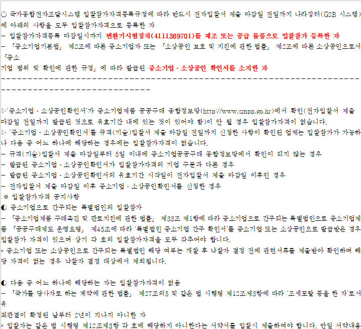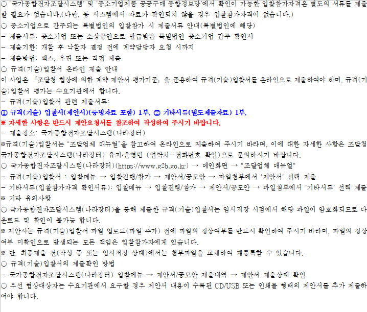 규격(기술)입찰서 제출이 원활하지 않을 수 있으니, 가급적 규격(기술)입찰서 제출 마감일 전일까지 제