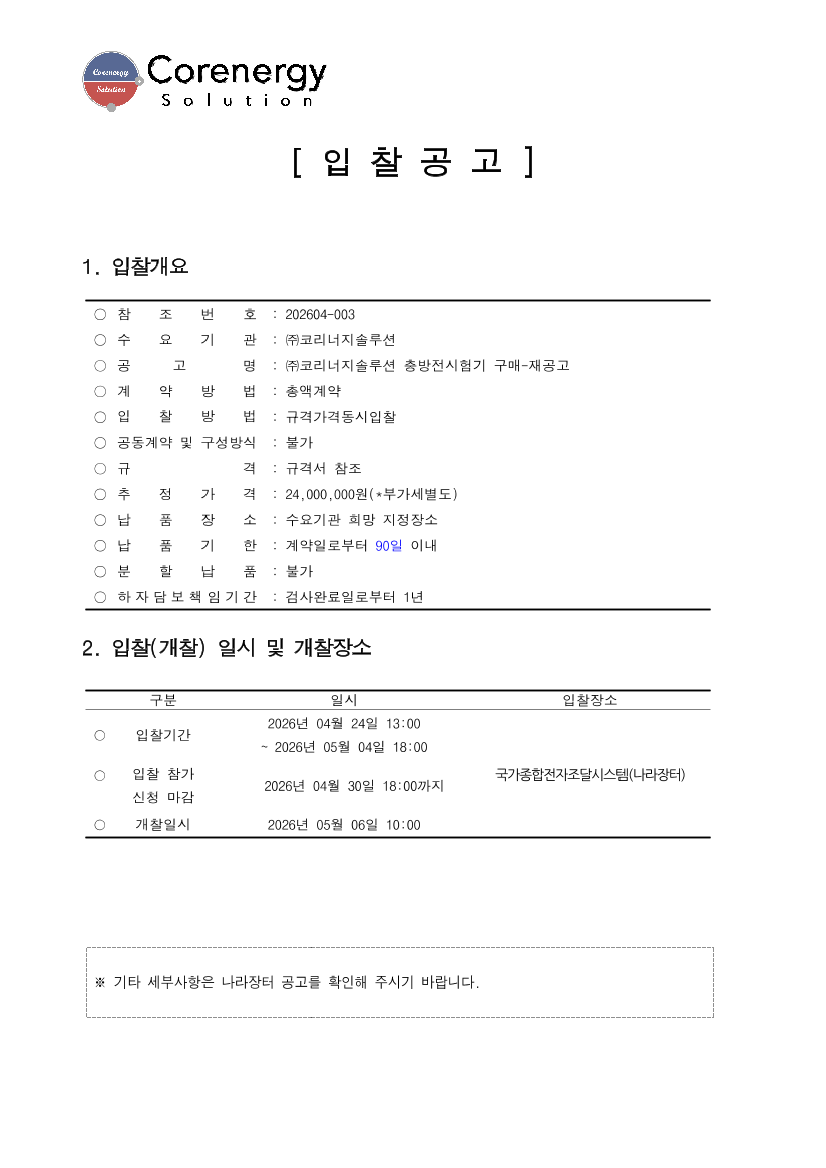 코리너지솔루션 충방전시험기 구매-재공고 |