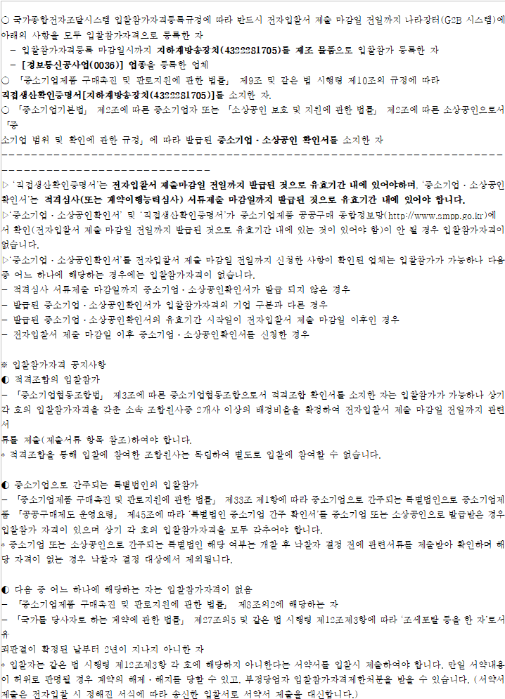 ○ 이 입찰은 「중소기업제품 구매촉진 및 판로지원에 관한 법률」 제7조 제2항 에 따라 낙찰자를 결정합니다.