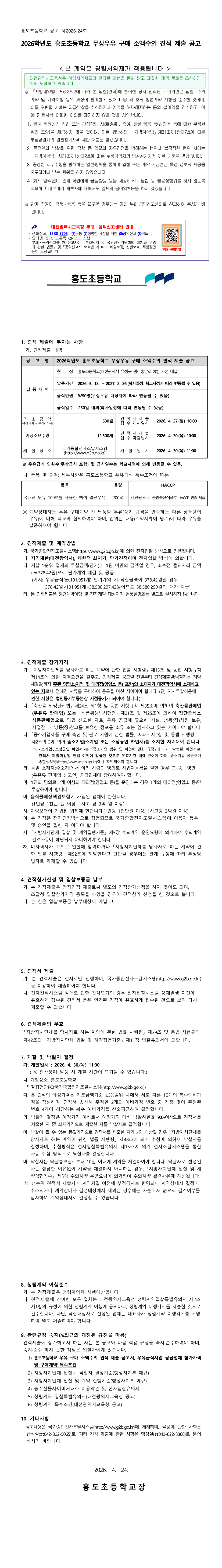 2026학년도 흥도초등학교 무상우유 구매 소액수의 견적 제출 공고 |