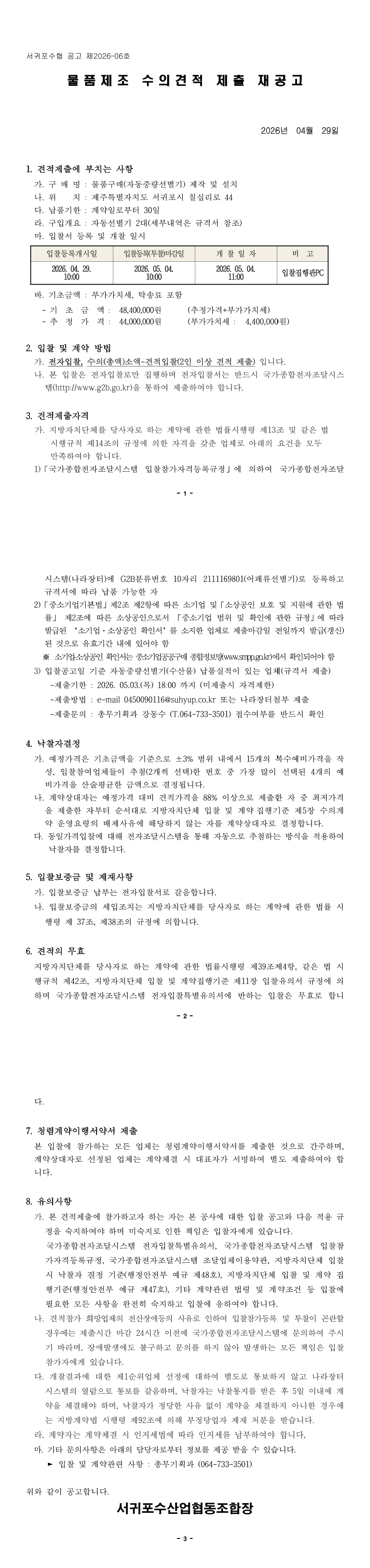 물품구매(자동중량선별기) 수의견적 제출 재공고입찰 |