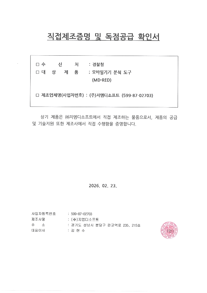26년 모바일기기 분석프로그램 라이선스 구매(5-라) |