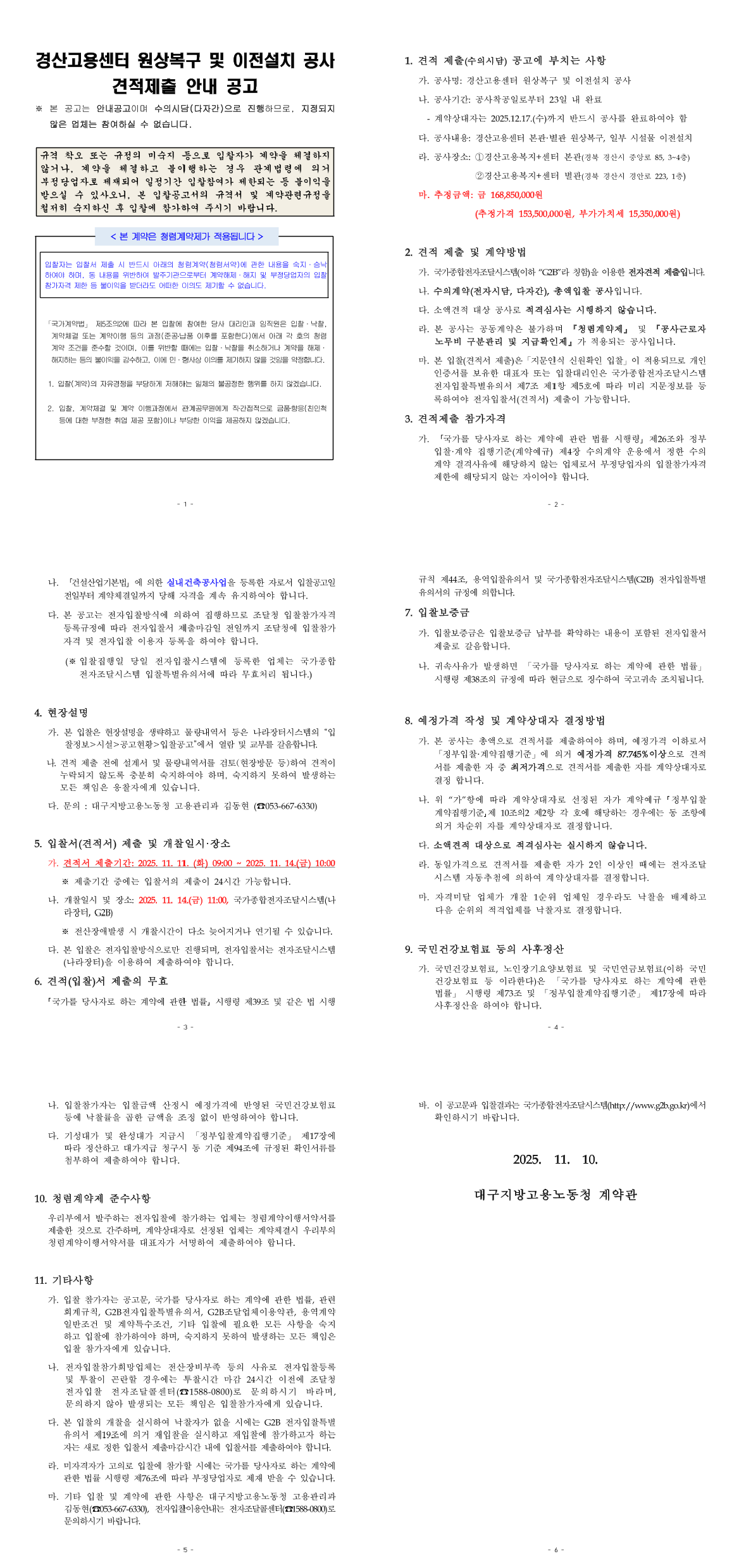 경산고용센터 원상복구 및 이전설치 공사 견적 제출(수의시담) 공고 |