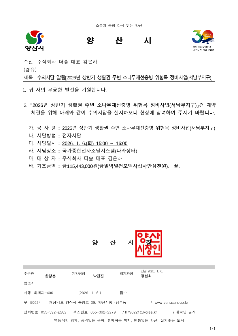 2026년 상반기 생활권 주변 소나무재선충병 위험목 정비사업(서남부지구) |