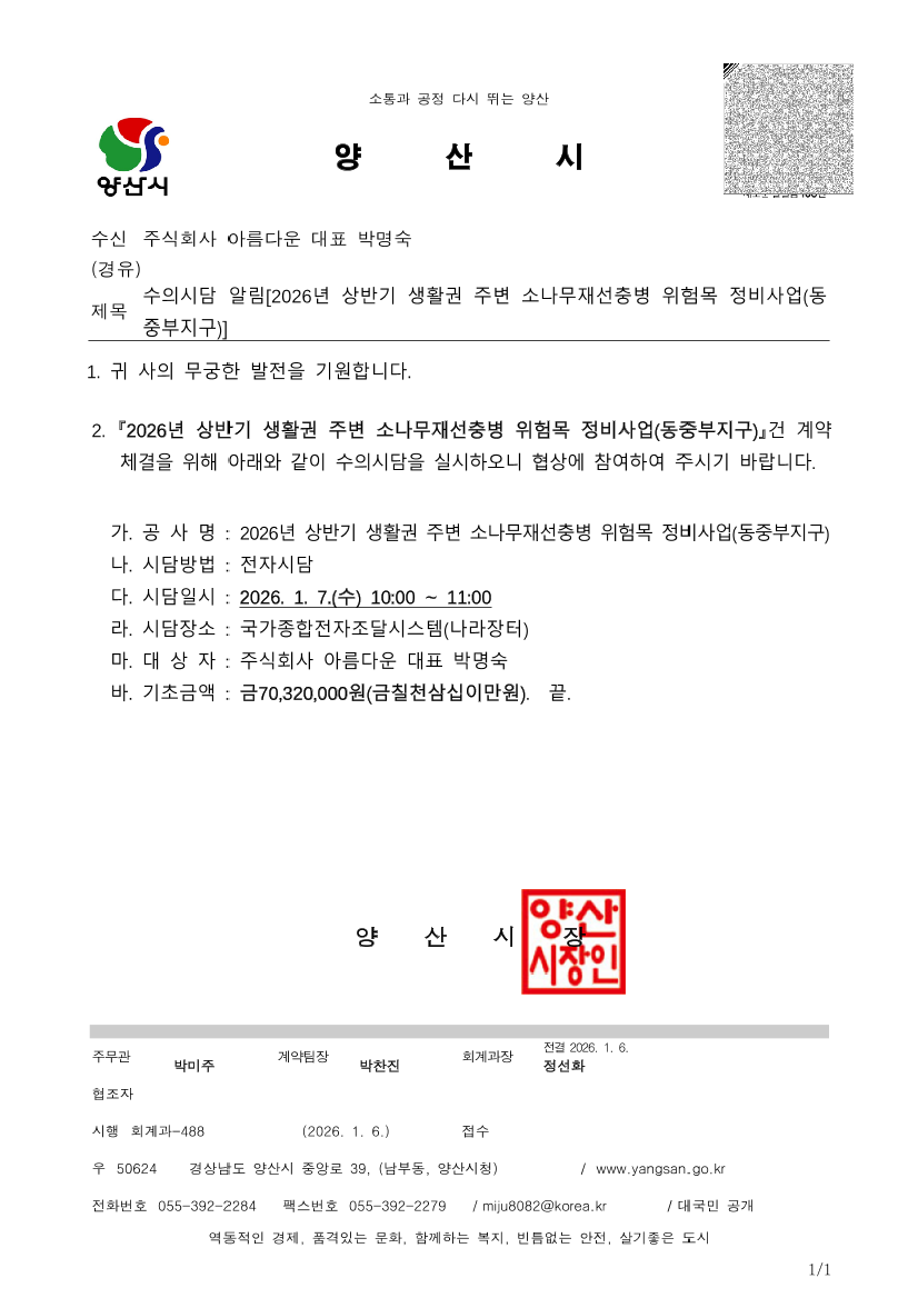 2026년 상반기 생활권 주변 소나무재선충병 위험목 정비사업(동중부지구) |
