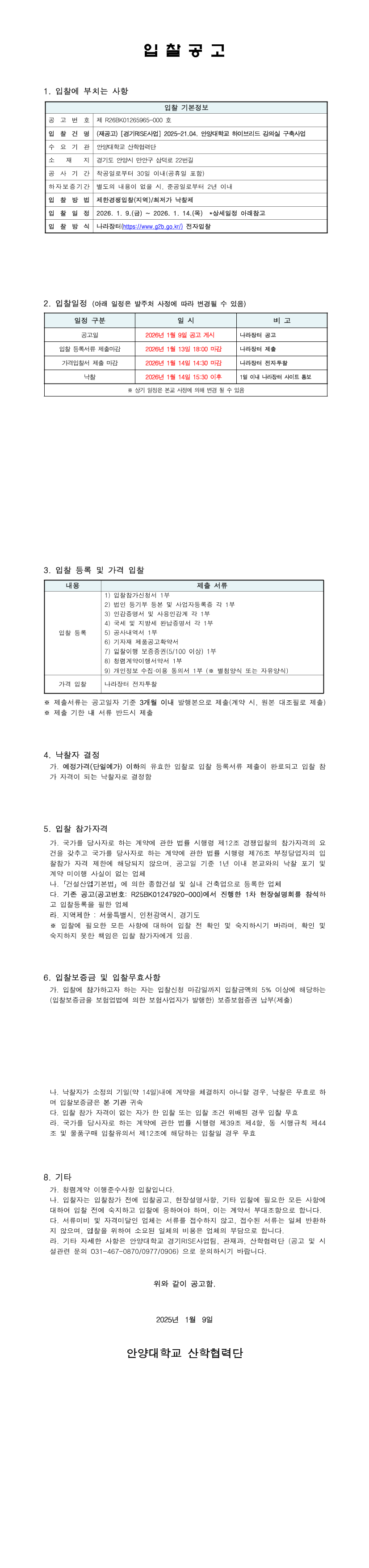 (재공고) [경기RISE사업] 2025-21.04. 안양대학교 하이브리드 강의실 구축사업 |