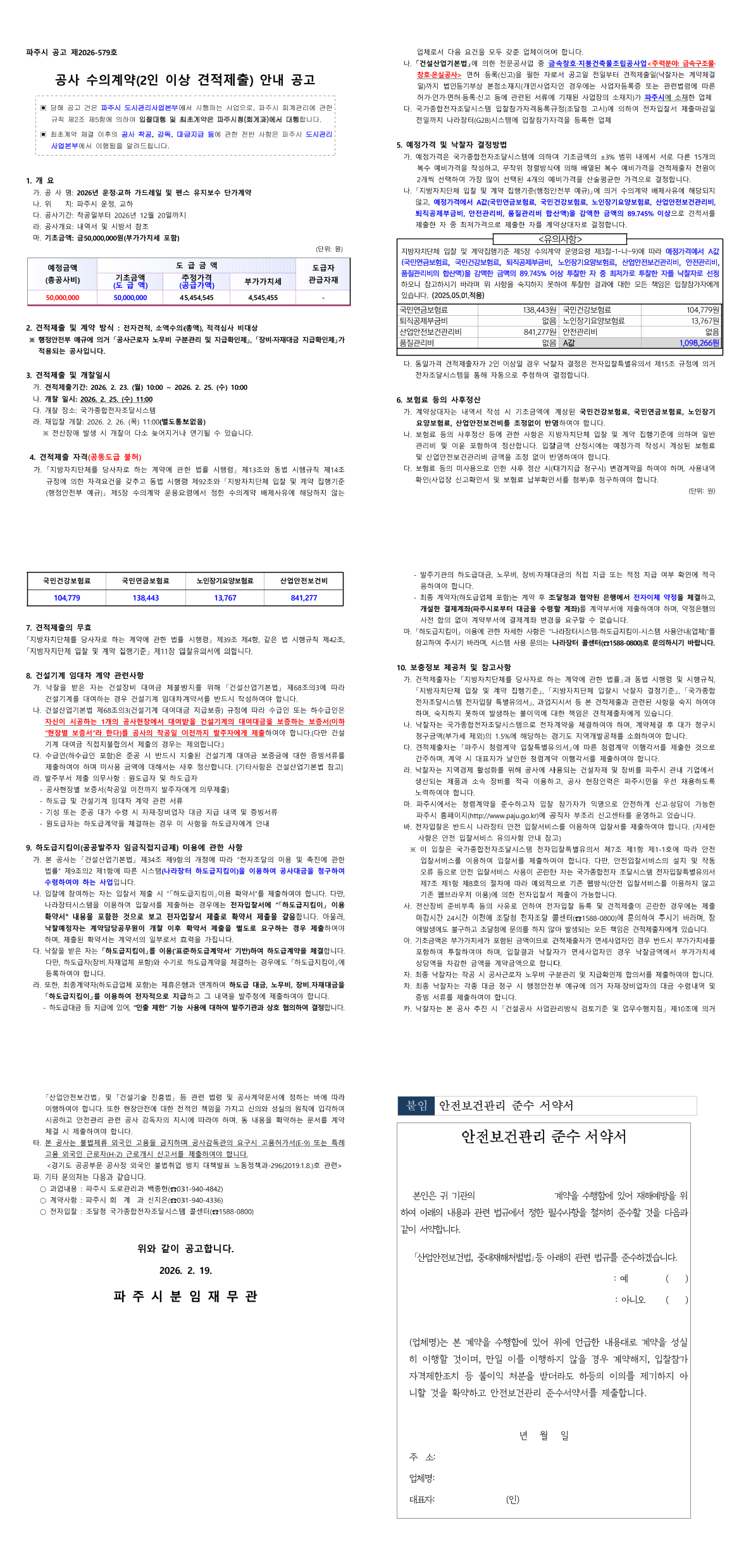 2026년 운정·교하 가드레일 및 펜스 유지보수 단가계약 |