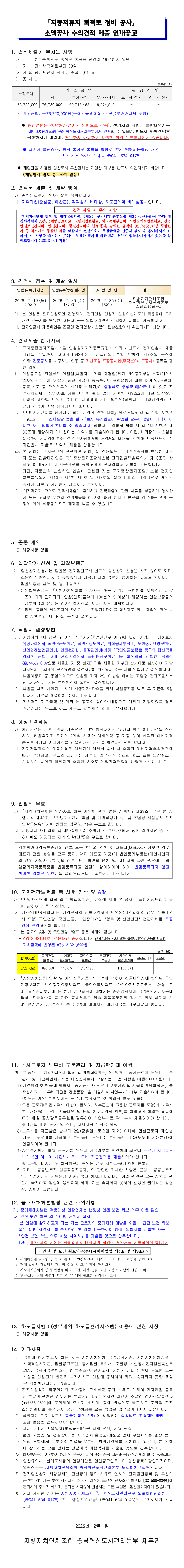 「지동저류지 퇴적토 정비 공사」 소액 수의견적 제출 안내공고 |