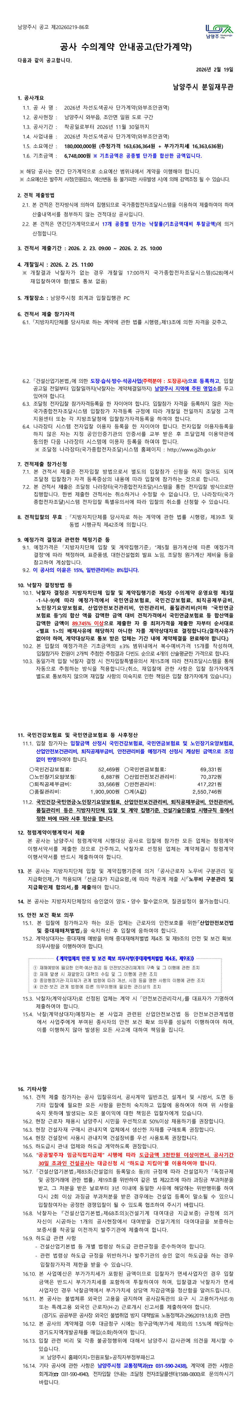 2026년 차선도색공사 단가계약(와부조안권역) |