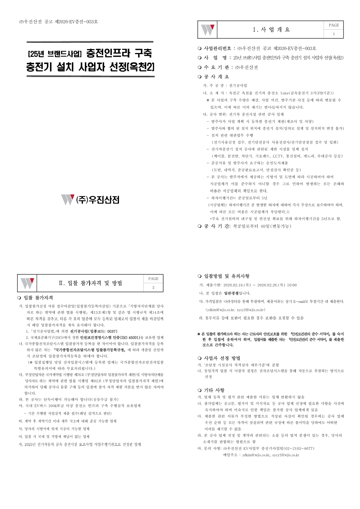 [25년 브랜드사업] 충전인프라 구축 충전기 설치 사업자 선정(옥천2) |