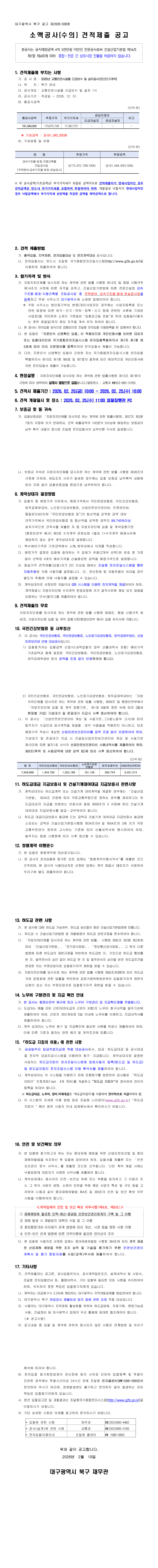 2026년 교통안전시설물 긴급보수 및 설치공사(연간단가계약) |