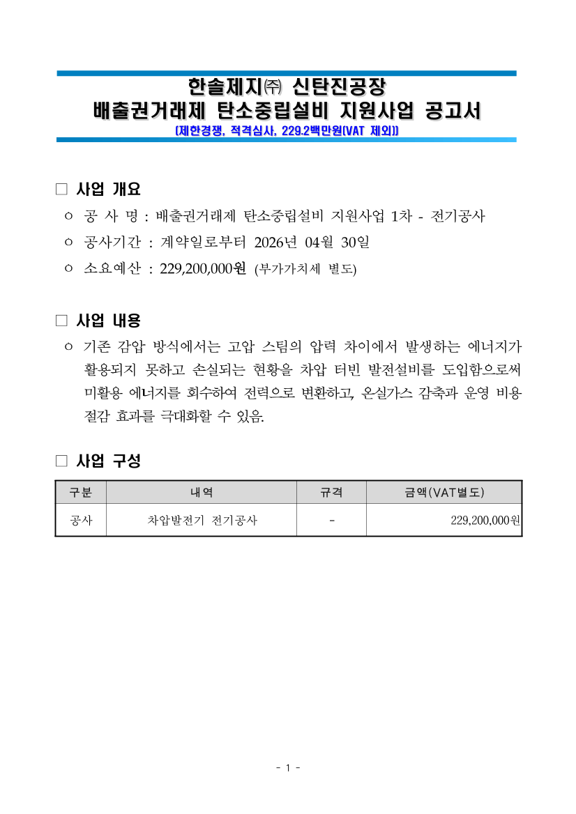 감축설비-2차-62-한솔제지(주)신탄진공장-차압터빈 발전기-전기공사 |