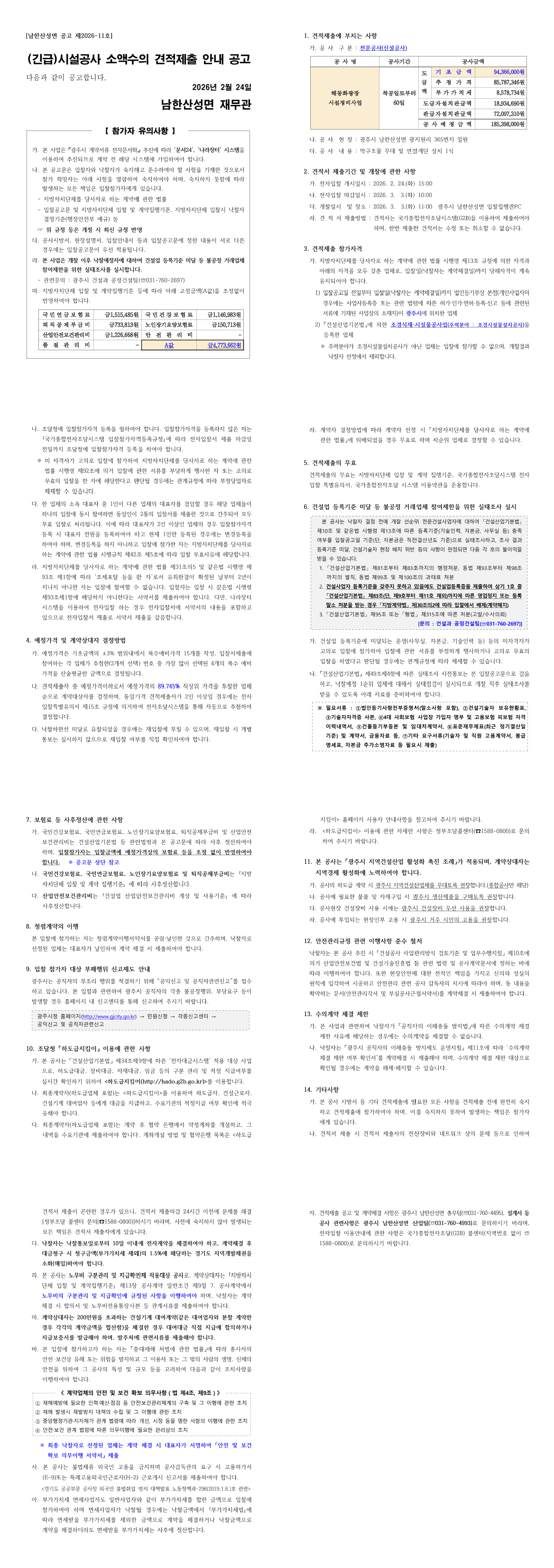 (긴급)시설공사 소액수의 견적제출 안내 공고 [해동화광장 시설정비사업] |