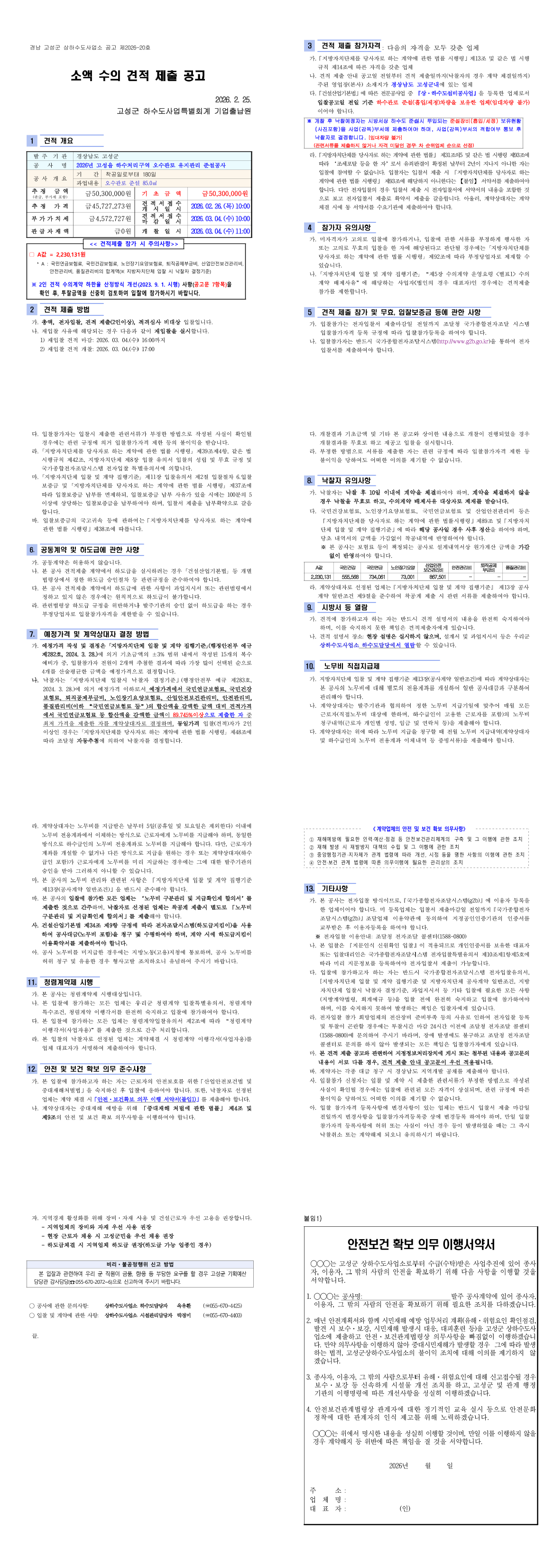 2026년 고성읍 하수처리구역 오수관로 유지관리 준설공사 |