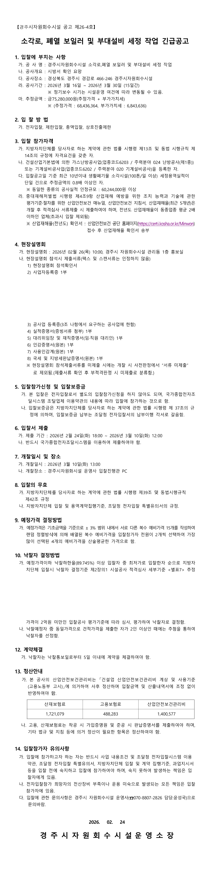 경주시자원회수시설 소각로, 폐열 보일러 및 부대설비 세정 작업 |