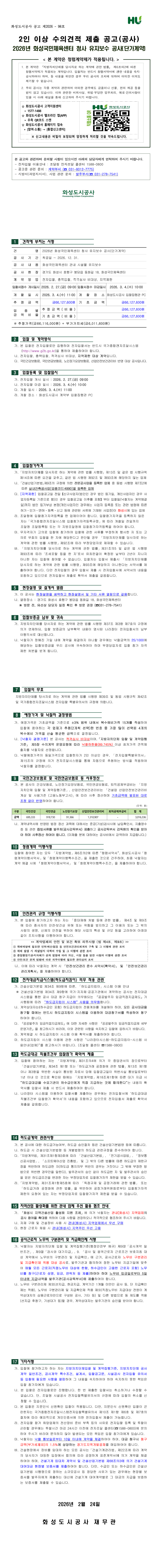 2026년 화성국민체육센터 청사 유지보수 공사(단가계약) |