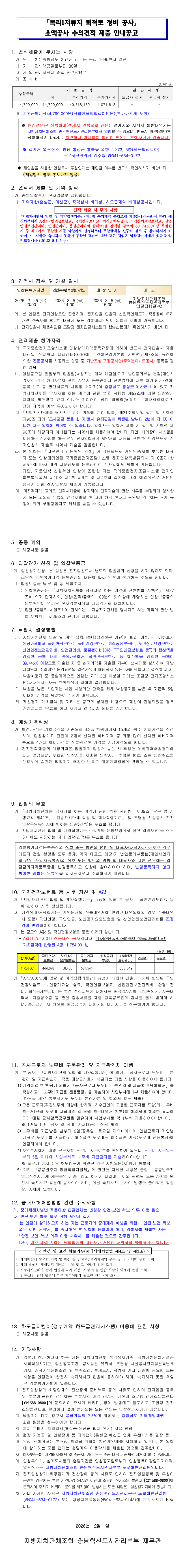 「목리1저류지 퇴적토 정비공사」소액공사 수의견적 제출 안내공고 |