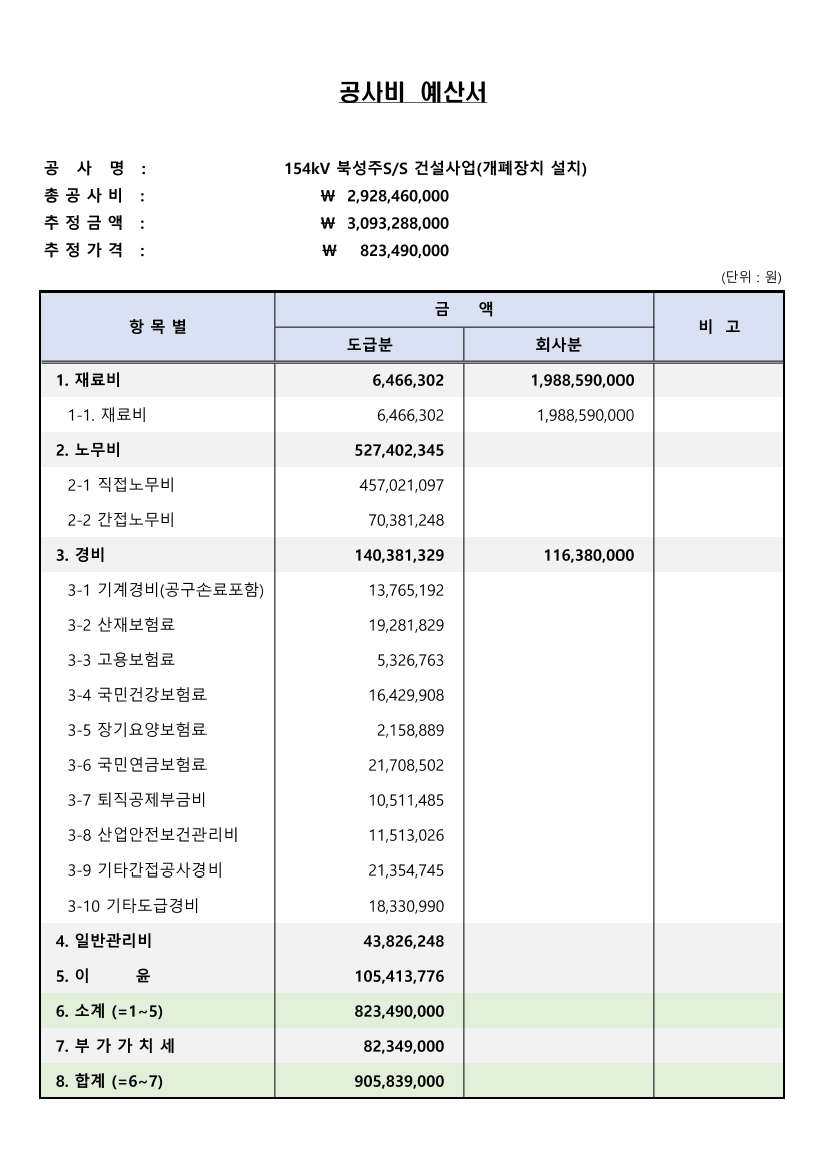 154kV 북성주S/S 건설공사(개폐장치 설치) |
