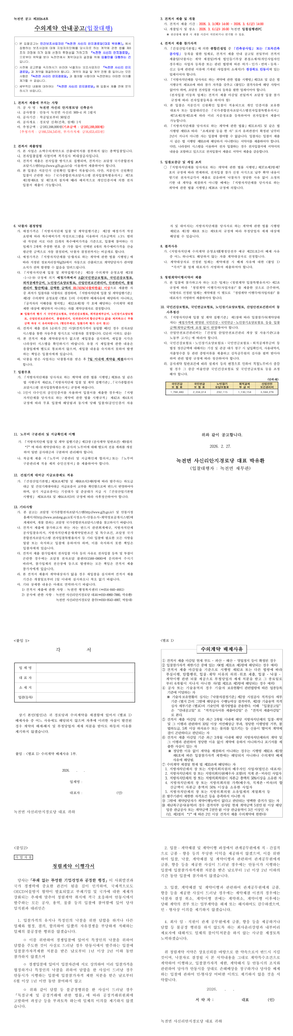 [입찰대행공고]녹전면 사신리 안지경로당 신축 공사 |