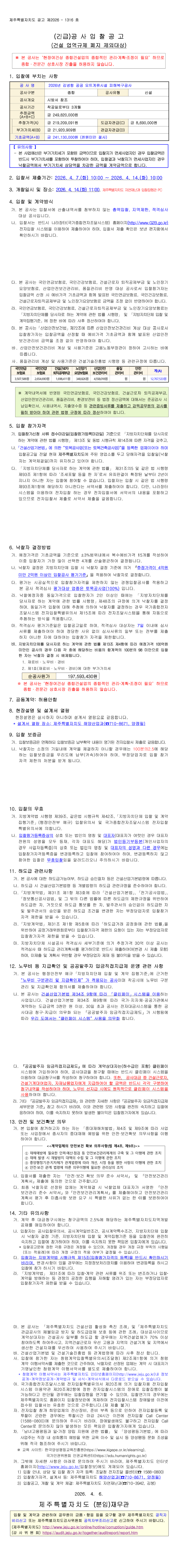 2026년 김녕항 공공 요트계류시설 피해복구공사 |