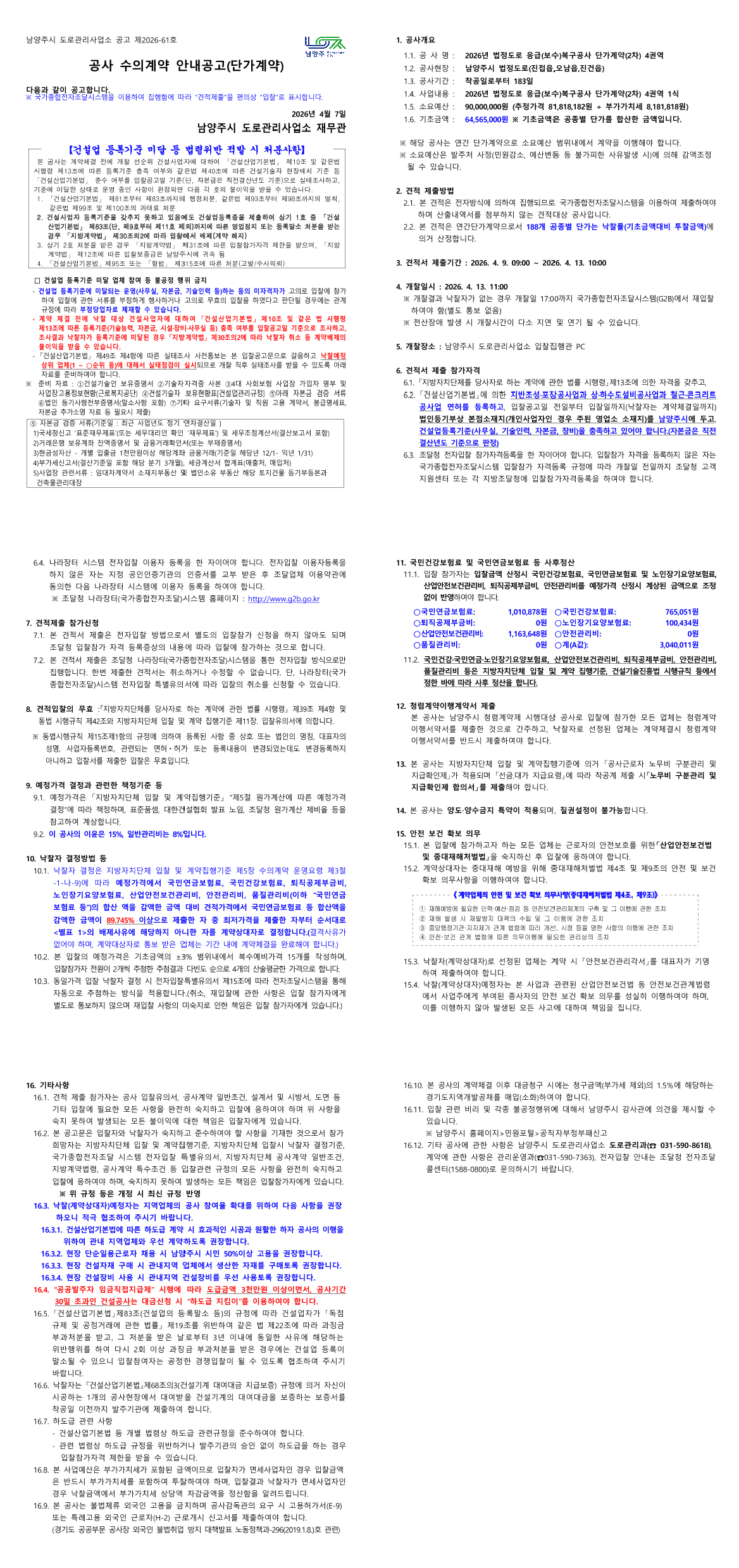 2026년 법정도로 응급(보수)복구공사 단가계약(2차) 4권역 |
