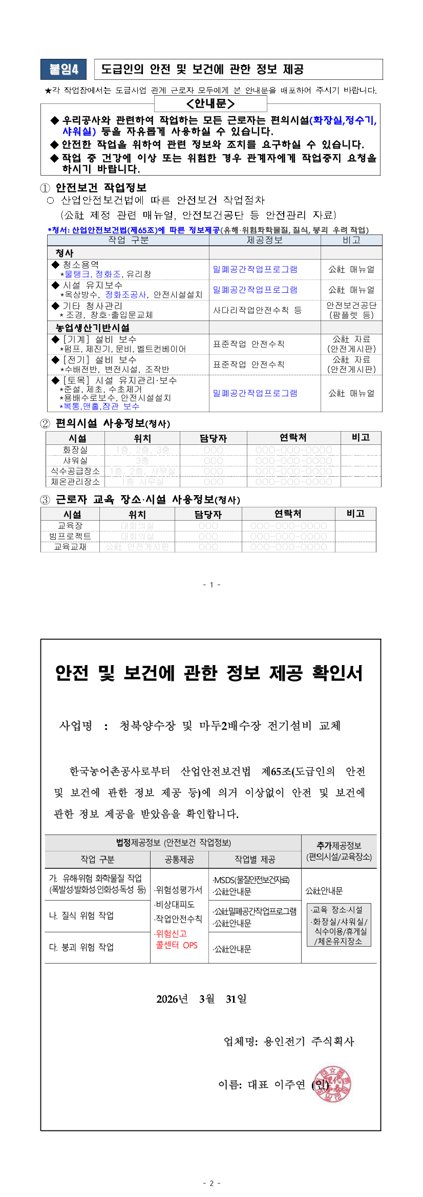 청북양수장 및 마두2배수장 전기설비 교체 공사 |