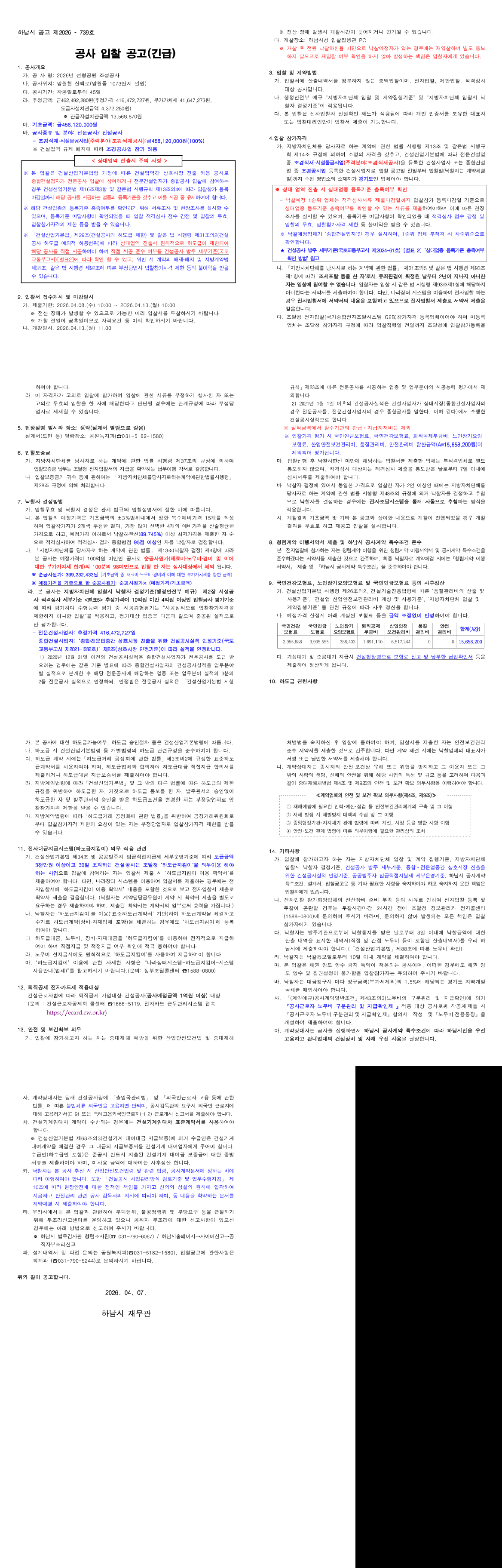 2026년 선형공원 조성공사 입찰 공고(긴급) |