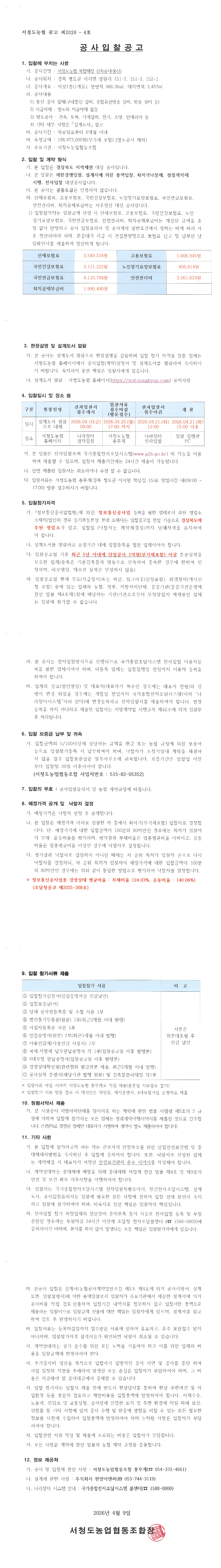 서청도농협 복합매장 신축공사(통신) 입찰 공고 |