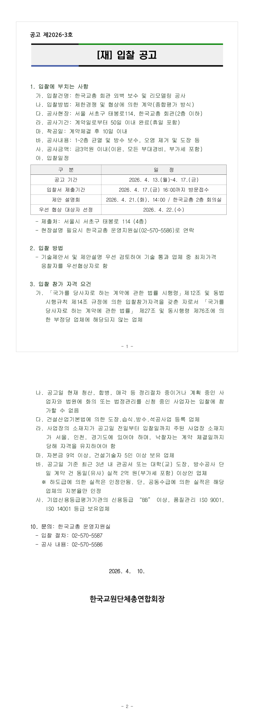한국교총 회관 외벽 보수 및 리모델링 공사 |
