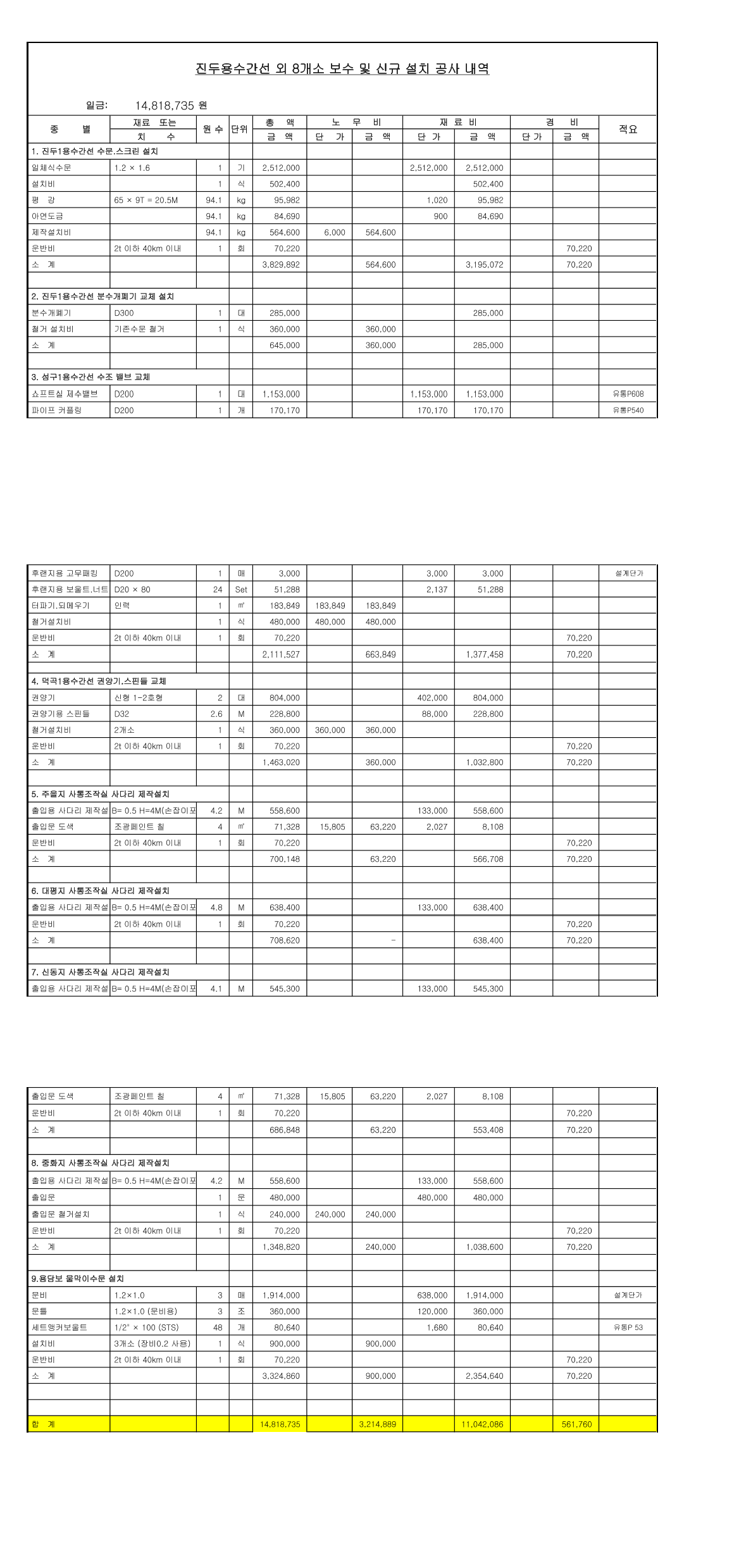 진두용수간선 외 8개소 기계시설물 보수 및 신규 설치 공사 |