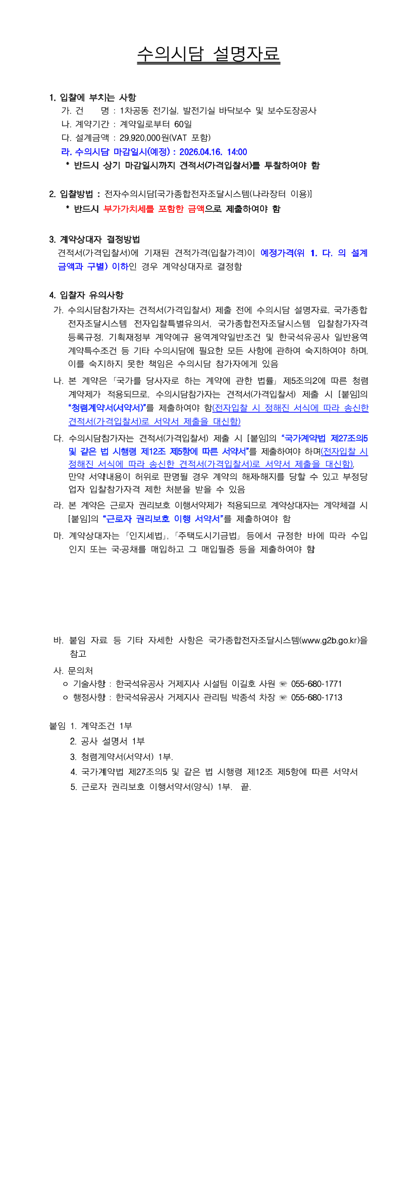 1차공동 전기실, 발전기실 바닥보수 및 보수도장공사 |