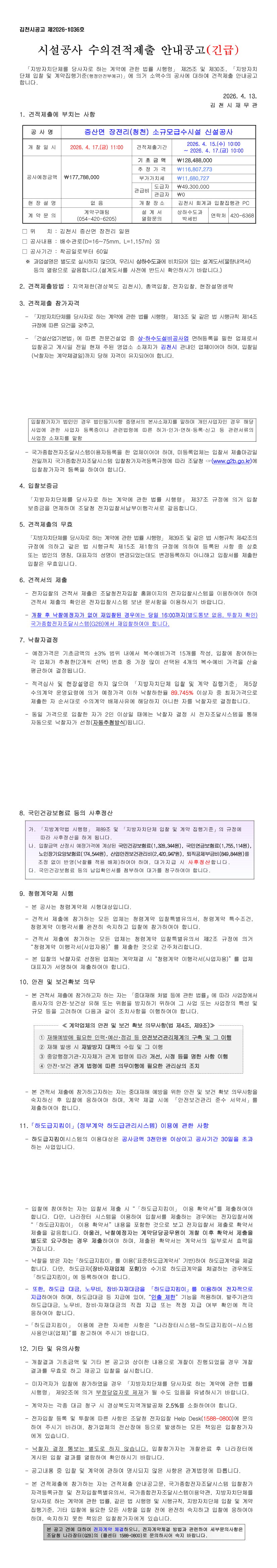 증산면 장전리(청천) 소규모급수시설 신설공사 |