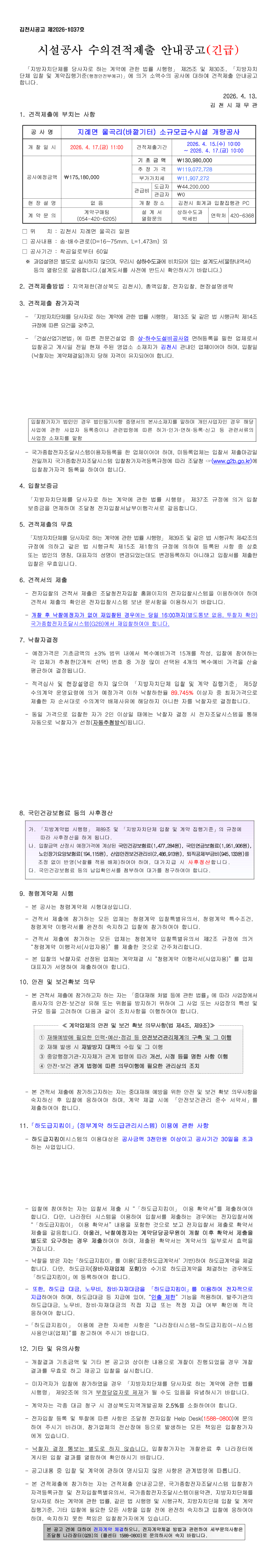 지례면 울곡리(바깥기터) 소규모급수시설 개량공사 |